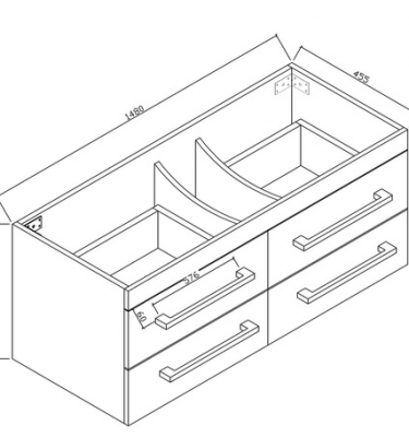 Indi 1200-4D Free Standing 4 Drawers M Handles Soft close runner Dimensions: Width: 1180mm Height: 750mm Depth: 455mm