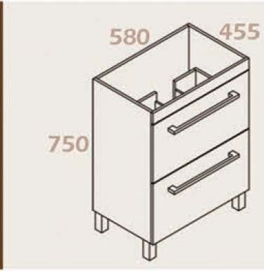 Indi 750 Free Standing 2 Drawers M Handles Soft close runner Dimensions: Width: 730mm Height: 750mm Depth: 455mm