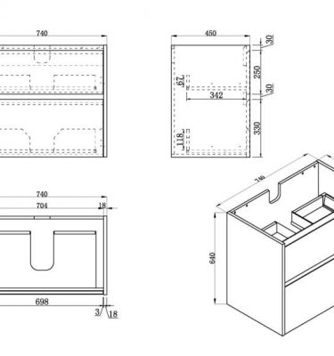Venetian Series AS750DW WHT Wall Hung Measurement: 740mm(Width) x 450mm(Depth) x 540mm(Height) (+/- 3mm tolerance) Mix & Match Cabinet Matt White finish