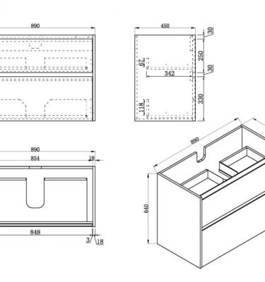 Caliber Series VMF900DW WHT Wall Hung Measurement: 890mm(Width) x 454mm(Depth) x 640mm(Height) (+/- 3mm tolerance) Mix & Match Cabinet Gloss White finish