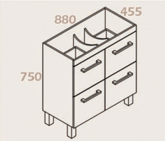 Indi 900-4D Free Standing 4 Drawers M Handles Soft close runner Dimensions: Width: 880mm Height: 750mm Depth: 455mm