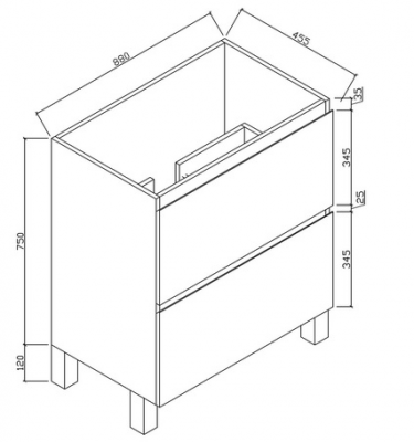 Newport 900-2D Free Standing White poly 2 pack 45° finger pull Soft closing (2 Draw) Legs or kickers Dimensions: Width