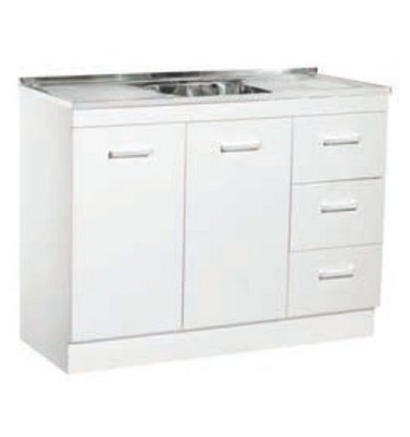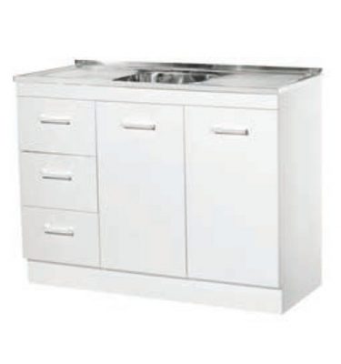 1200mm Stallion Kitchenette/Laundry – BUS120PL Measurement: 1200mm(Width) x 895mm(Height) x 495mm(Depth) (+/- 3mm tolerance) Double doors and 3 drawers on the