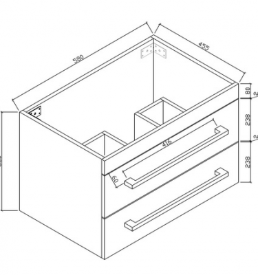 Newport 600 Free Standing White poly 2 pack 45° finger pull Soft closing (2 Drawers) Legs or kickers Dimensions: Width: 580mm