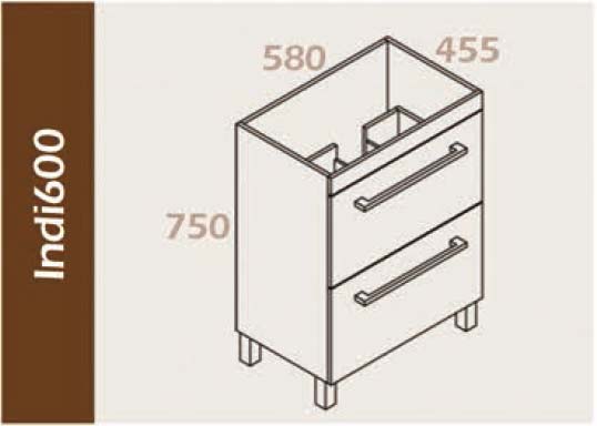 Indi 600 Wall Hung White poly 2 pack M handle Soft closing Dimensions: Width: 580mm Height: 560mm Depth: 455mm