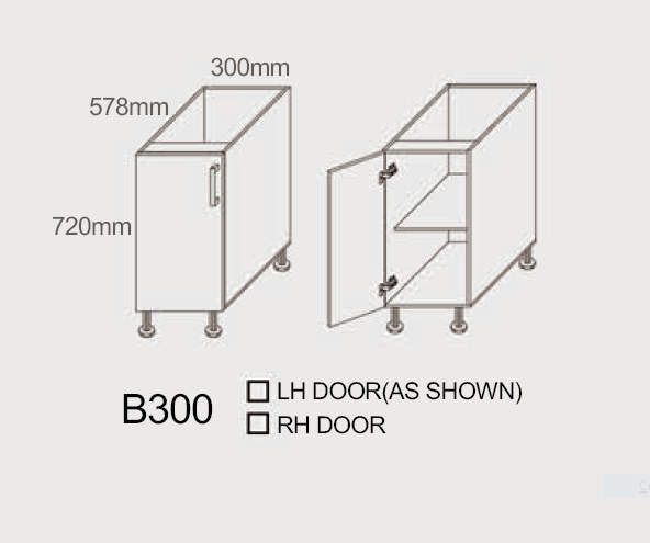 B450 Base Cabinet Dimensions: Width: 450mm Height: 720mm Depth: 578mm