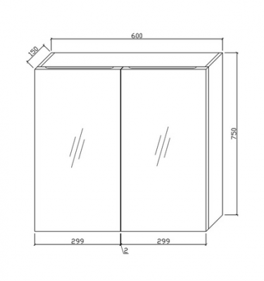 600mm(Width) x 750mm(Height) x 170mm(Depth) – 2 doors