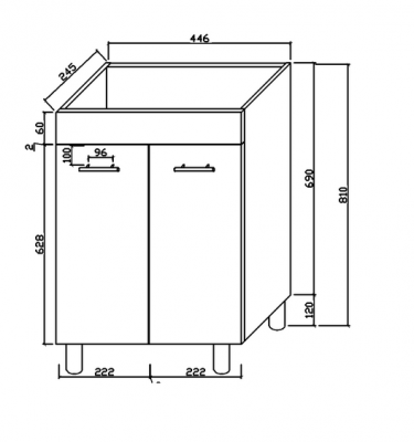 4525T Free Standing 1.White poly 2 pack 2.Post & Rail handle 3.Soft close hinge 4.Round legs Dimensions: Width: 446mm Height: 690mm Depth: 245mm